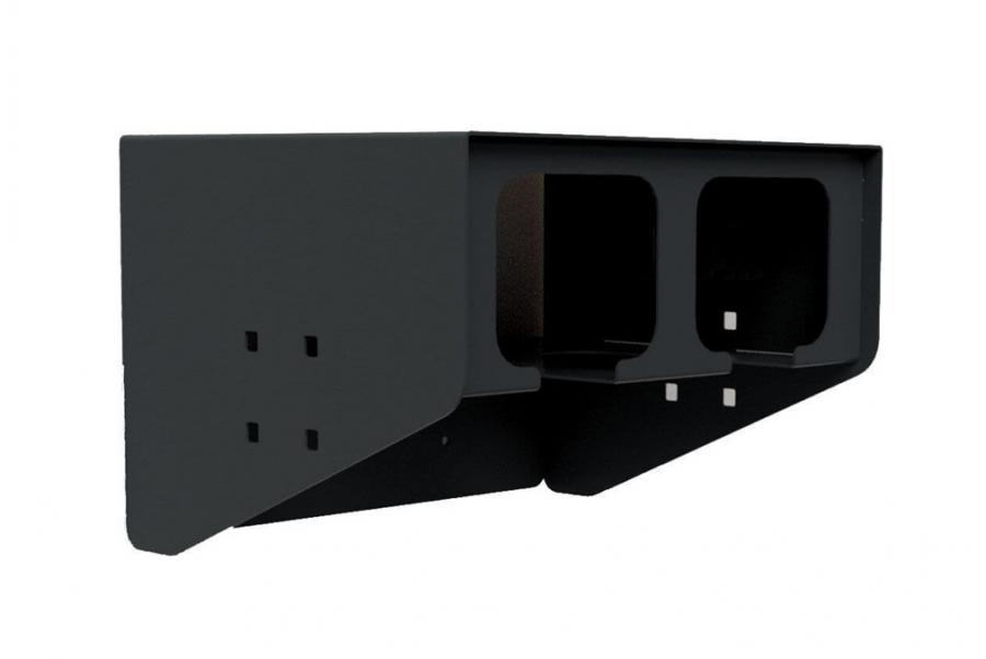 Egy robusztus fali tartó 2 elektromos behajtó, vagy például pneumatikus szerszám számára. A tartó felső része tökéletesen funkcionál akkumulátortöltő platformként is. Ellenálló fémből készült, tartós porfesték bevonattal.