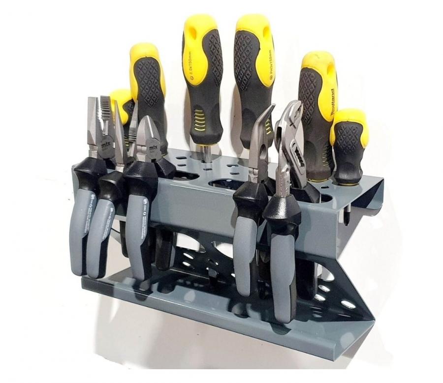 Ez a 19 férőhelyes fali rendszerező egy igazi többfunkciós megoldás, amely nemcsak csavarhúzók, hanem fogók és egyéb kéziszerszámok professzionális tárolására is alkalmas. Kialakításának köszönhetően segít a műhelyben vagy garázsban a maximális rend fenntartásában, miközben minden fontos eszköz átláthatóan, egy helyen marad.