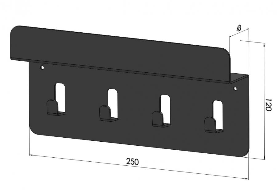 Kulcstartó 4 akasztós polccal 25x12 cm, Antracit