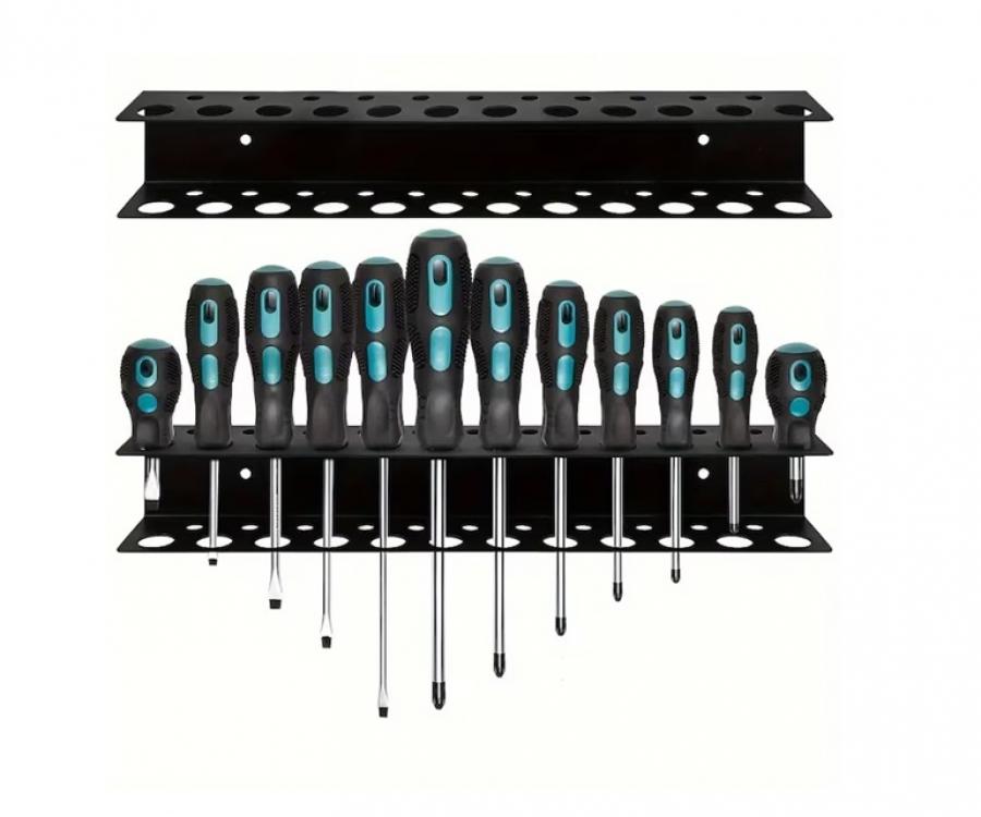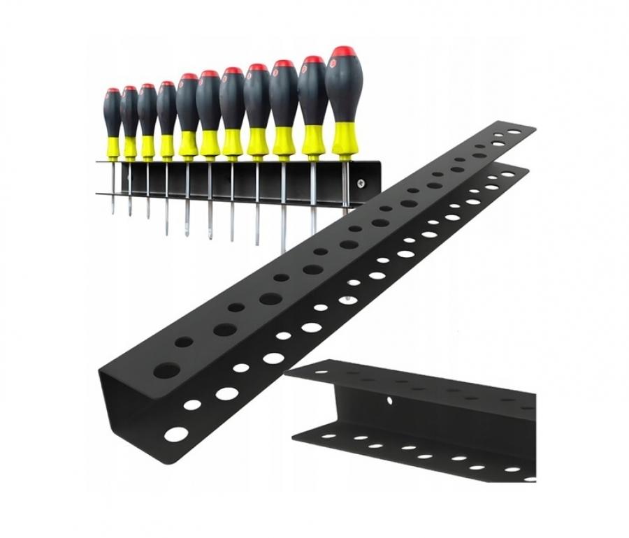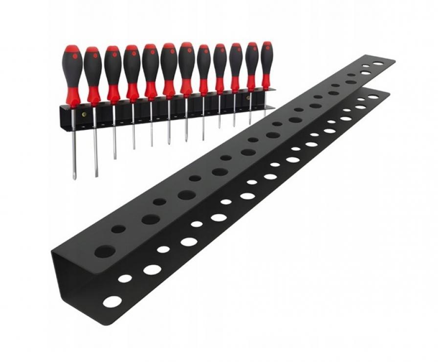 Ez a robusztus és helytakarékos fém rendszerező kiváló választás a műhelyi rend fenntartásához. A 23 férőhelyes kialakítás lehetővé teszi a csavarhúzók és kisebb kéziszerszámok széles skálájának rendszerezett tárolását, így minden eszköz azonnal megtalálható munka közben.